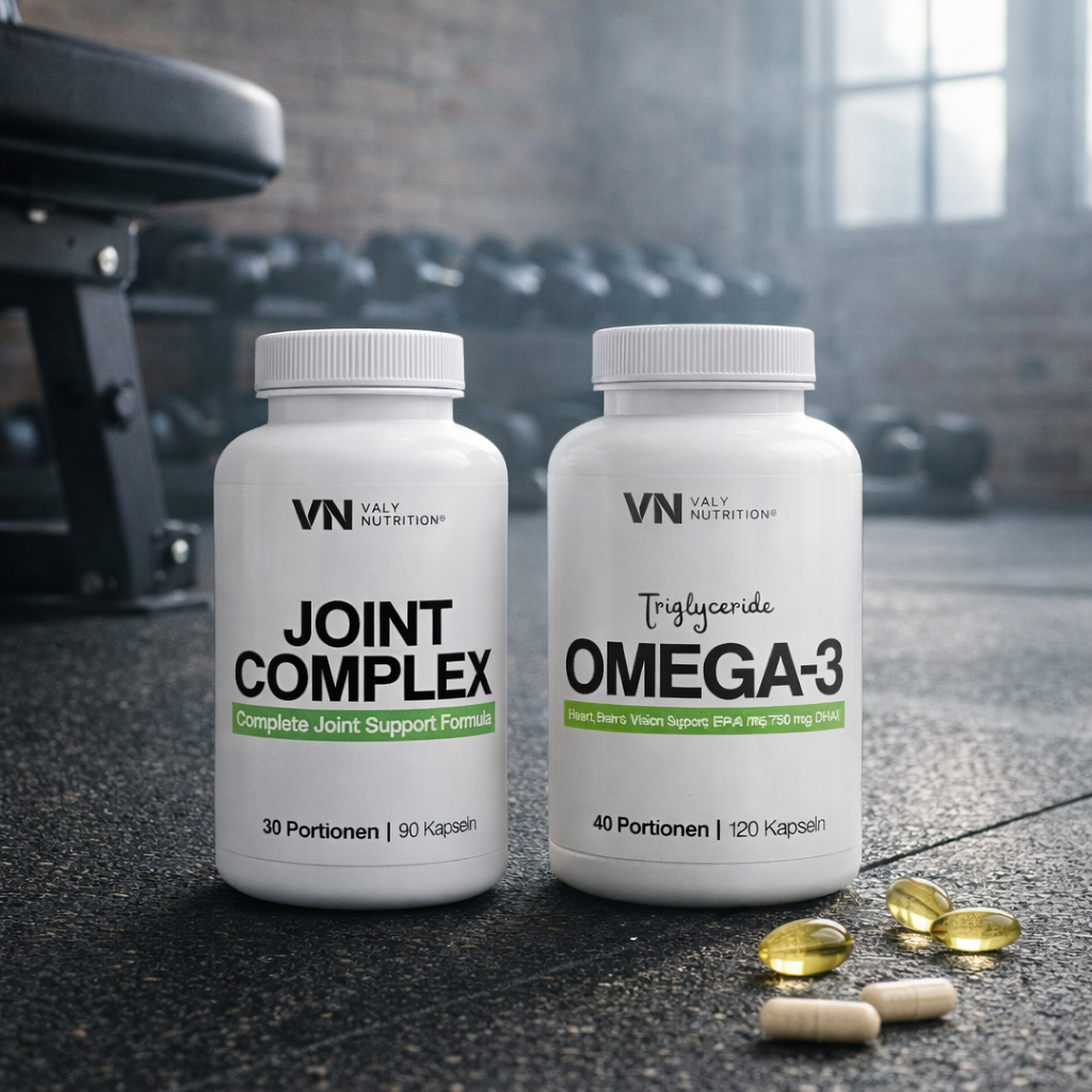 Das Joint & Recovery Bundle kombiniert den Joint Complex mit Omega-3 zu einer funktionalen Lösung für sportlich aktive Menschen mit wiederkehrender mechanischer Belastung. Während der Joint Complex gezielt auf Gelenk- und Bindegewebsstrukturen ausgerichtet ist, ergänzt Omega-3 das System um essentielle Fettsäuren zur langfristigen Begleitung von Regeneration und Anpassung.